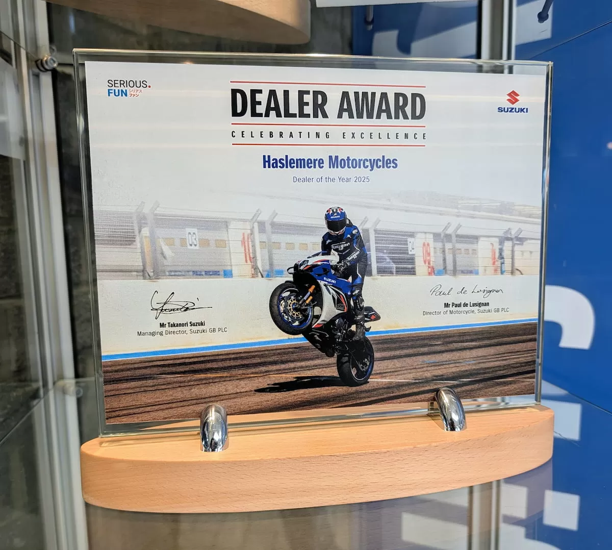 Haslemere Motorcycles is proud to announce that it has been awarded Suzuki UK Dealer of the Year 2025, a prestigious national accolade recognising outstanding performance, customer service, and commitment to the Suzuki brand.