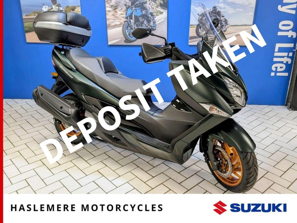Take advantage of this incredible deal on a January 2026 registered Suzuki Burgman. Finished in the stunning and sophisticated Matt Green with contrasting Gold Wheels